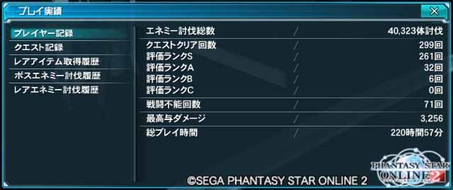 PSO2ですごした時間:220時間